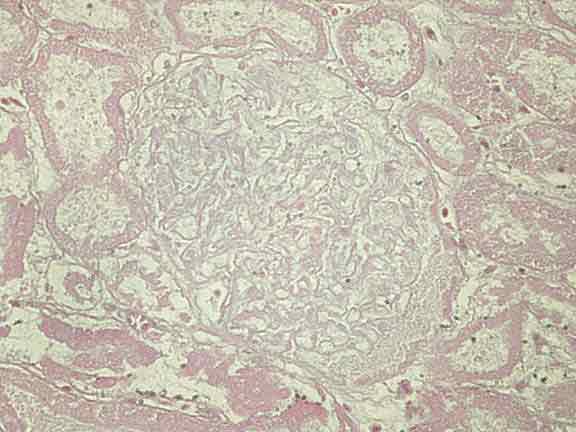 Histological Findings:Haematoxylin & Eosin (x400)Sections of the kidney reveal that all the cells in extensive regions of the cortex and medulla had died. They had a hyper-eosinophilic appearance and lacked nuclei. The structure of the glomeruli and the renal tubules were well preserved. There appeared to be no inflammatory cell reaction except at the very edges of the necrotic regions.This is an example of what type of necrosis? |